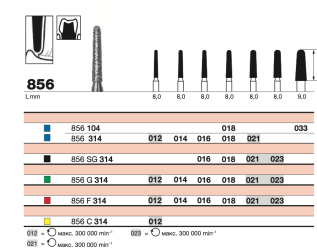 Универсальный алмазный бор D+Z /856 314.012 используется для препарирования зубов. Обычно он применяется при формировании полостей и подготовке под коронки. Конусовидная форма с закругленным концом удобна и безопасна в работе.